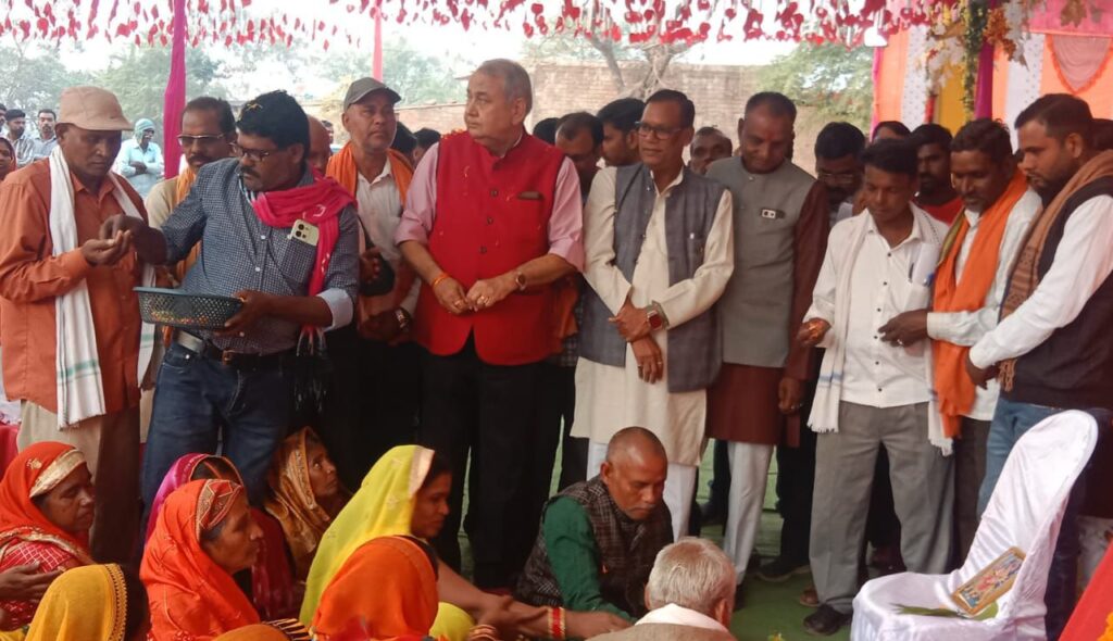 बिलासपुर। तखतपुर विधानसभा क्षेत्र अंतर्गत आने वाले ग्राम पंचायत चनाडोंगरी में कल 6 जनवरी सोमवार को महादेव बांध के पास दुर्गा मंदिर मैदान में महतारी सदन भवन निर्माण का भूमिपूजन कार्यक्रम आयोजित किया गया। जिसमें कार्यक्रम के मुख्य अतिथि तखतपुर विधायक धर्मजीत सिंह ठाकुर , विशिष्ट अतिथ तखतपुर विधानसभा क्षेत्र के बहुत ही लोकप्रिय नेता संतोष कुमार कौशिक, जिला पंचायत सदस्य श्रीमती ममता धनंजय क्षत्री, जनपद सदस्य श्रीमती संतीषी सालिक यादव एवं सेवा सहकारी समिति चनाडोंगरी के अध्यक्ष भूपेंद्र कुमार कौशिक, चनाडोंगरी सरपंच गिरधारी लाल सक्सेना रहे। इस अवसर पर कार्यक्रम को संबोधित करते हुए विधायक धर्मजीत सिंह ठाकुर ने कहा कि चनाडोंगरी गांव में अब माताओं एवं बहनों के लिए 24 लाख एवं 70 हजार रुपए की लागत से यहां पर महतारी सदन भवन का निर्माण होगा जिसमें यहां के सभी माताओं बहनों को किसी भी सार्वजनिक कार्य करने और बैठने के लिए बहुत सुविधा होगी । श्री सिंह ने आगे कहा की जहां पर नारी शक्ति और मात्रिशक्ति का सम्मान नहीं होता वहां पर देवताओं भी वास नहीं करता है। इस प्रकार विशिष्ट अतिथि संतोष कुमार कौशिक ने भी सभा को सम्बोधित करते हुए कहा की तखतपुर विधानसभा क्षेत्र वासियों को धर्मजीत सिंह भैया जैसे विधायक मिलना बहुत गर्व की बात है जों अपने विधानसभा क्षेत्र के विकास कार्यों में सदैव तत्पर है चनाडोंगरी वासियों को सबसे बड़ी समस्या रोड का था जो हमारे विधायक महोदय द्वारा यहां लोगों के हित को ध्यान में रखते हुए सबसे पहला कार्य चनाडोंगरी और देवरीखुर्द पहुंच मार्ग के लिए तकरीबन सात करोड़ की लागत से सड़क का निर्माण कार्य को स्वीकृति करवाया जो आज यहां सड़क का निर्माण कार्य शुरू हो चुका है। उक्त कार्यक्रम का संचालन भाजपा नेता बंशी लाल पाड़े और आभार व्यक्त चनाडोंगरी के गौंटिया राजेन्द्र प्रसाद कौशिक ने किया। कार्यक्रम को सफल बनाने में महिलाओं का सबसे बड़ा योगदान रहा। इस दौरान कार्यक्रम में प्रमुख रूप से दूर्गा प्रसाद यादव, रमेश कुमार वस्त्रकार,राजू सूर्यवंशी, गंगा मानिकपुरी,तितरा पटेल, सालिक यादव, श्रवण कुमार वस्त्रकार, शोभा यादव,भानू यादव,सोनू यादव,सून्दर पाली, पन्ना पाली, विनोद कौशिक, मनोज कौशिक,शीतल मरावी, मनेन्द्र तिवारी, पुर्व सरपंच मनीराम कैवर्त, चंद्रकांत चेलकर,दिलेश गेंदले,राजकुमार सुर्यवंशी, हीरालाल पटेल,घुटकू सरपंच, सागर सरपंच, लाखासर सरपंच एवं आरईएस एसडीओ आर. बी. साहू, इंजीनियर प्रशांत कुर्रे व विभाग के समस्त स्टाफ गण सहित तखतपुर विधानसभा क्षेत्र के भाजपा नेता बड़ी संख्या में उपस्थित थे।