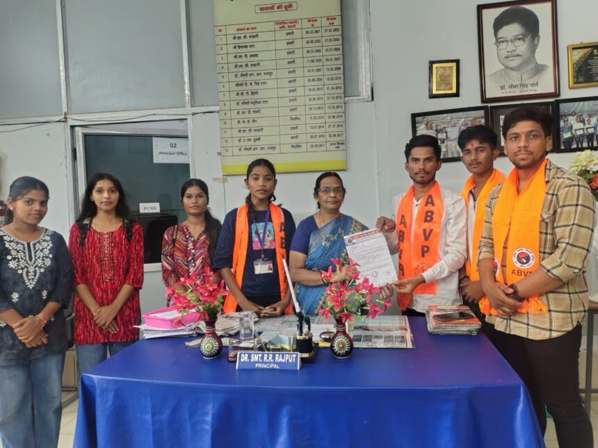 पेन्ड्रा/ अखिल भारतीय विद्यार्थी परिषद के कार्यकर्ताओं ने डॉ भंवर सिंह पोर्ते महाविद्यालय की समस्या को देखते हुए वहां की प्राचार्य को फिर एक बार ज्ञापन सौंपा और समस्याओं के निदान के लिए अपनी बात रखी महाविद्यालय के छात्रों ने कहा महाविद्यालय की समस्या दिनों दिन खराब होते जा रही और महाविद्यालय प्रशासन हाथ में हाथ रखी बैठी है इसी बीच एबीवीपी पेंड्रा के नगर मंत्री श्रेयांश पांडे ने कहा कि महाविद्यालय को मंदिर कहा जाता है और इस मंदिर में शराब की बोतल और गंदगी का ढेर है एवं रात को सामाजिक तत्वों का आना जाना लगा रहता है i परिसर में आज तक बाउंड्री वाल नहीं बनी है ना ही कैंटीन संचालित नहीं है कोई भी मूल बहुत सुविधाएं ठीक से नहीं है l