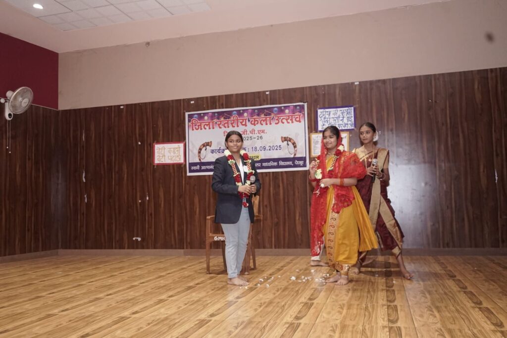 जिले के स्वामी आत्मानंद शासकीय बहु उच्च माध्य विद्यालय पेंड्रा के एसेंबली हॉल में विकसित भारत थीम पर आधारित 12 विद्या में तीनों विकासखंड गौरेला, पेंड्रा, मरवाही से आएं हुए प्रतिभागियों का जिला स्तरीय कला उत्सव 2025 का आयोजन किया गया l जिसमें मुख्य अतिथि के रूप में राजा उपेंद्र बहादुर सिंह उपाध्यक्ष जिला पंचायत गौरेला पेंड्रा मरवाही, विशिष्ट अतिथि रमेश तिवारी मंडल अध्यक्ष भाजपा एवं अध्यक्ष विद्यालय प्रबंधन एवं विकास समिति अजय राय सदस्य विद्यालय प्रबंधन एवं विकास समिति पूर्व छात्र नेता इंजी.सौरभ साहू , एन सिंह विकासखंड शिक्षा अधिकारी पेंड्रा एल पी डाहिरे प्राचार्य एवं जिला नोडल अधिकारी उपस्थिति थे