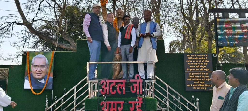 इस अवसर पर अटल जी की भव्य प्रतिमा पर जिला अध्यक्ष लाल जी यादव, जिला उपाध्यक्ष नीरज जैन एवं मंडल अध्यक्ष श्री रमेश तिवारी द्वारा माल्यार्पण किया गया। सभी कार्यकर्ताओं ने क्रमशः पुष्पांजलि अर्पित कर अटल जी को श्रद्धांजलि दी।